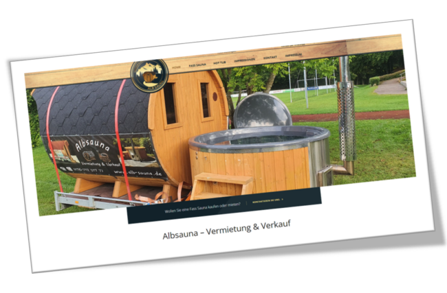 Im Dezember 2020 wurde die Seite des Münsinger Unternehmens Albsauna – Vermietung & Verkauf mobile Sauna erstellt und online gestellt um den Absatz von Fass Saunen und Hot Tubs zu fördern.